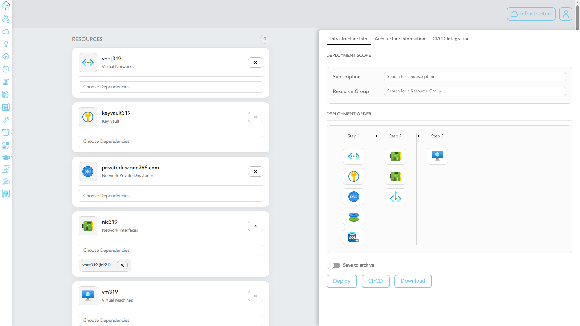 A complete toolkit for creating infrastructure as code in Terraform, Bicep, or ARM without wrestling with syntax. Start from scratch or use our library of draft resources as starting points and export production-ready code or integrate to your CI/CD pipelines.